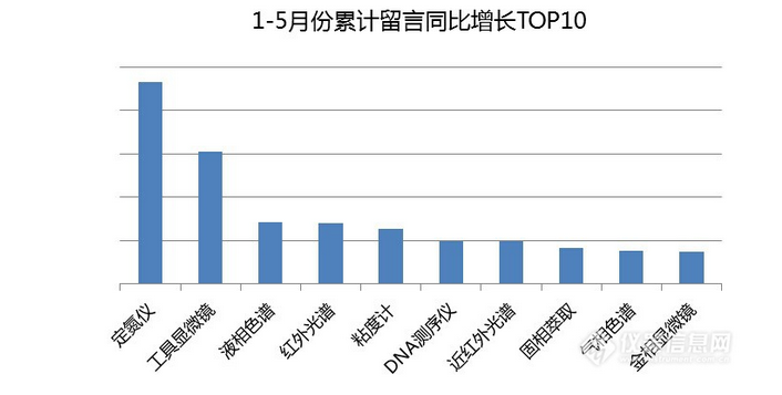 圖4中的定氮儀,和斯派克完全不一樣的行業(yè),斯派克專(zhuān)注工業(yè),而定氮儀是食物材料方面的,對(duì)大型食物材料企業(yè)尤為重要,隨著食物安全提高,越來(lái)越多中小型食物生產(chǎn)企業(yè)也需要到定氮儀,因此定氮儀毫無(wú)疑問(wèn)地成了今年1-5月份的增長(zhǎng)同比榜首。